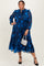 Navy Blue Floral Tiered Plus Midi Dress