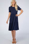 A solid ribbed short sleeve maternity dress with scoop neckline and tiered body.