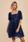 Navy Blue Sequin Pearl Embellished Square Neck Babydoll Dress