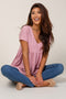 A peplum top featuring a swiss dot texture, short sleeves and a rounded v-neckline.
