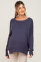 A sweater featuring a crew neckline, ribbed trim, exposed seam detailing, long sleeves and side slits.