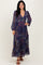 Navy Floral Chiffon V-Neck Long Sleeve Maxi Dress