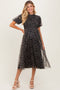 Navy Floral Embroidery Puff Sleeve MidiDress