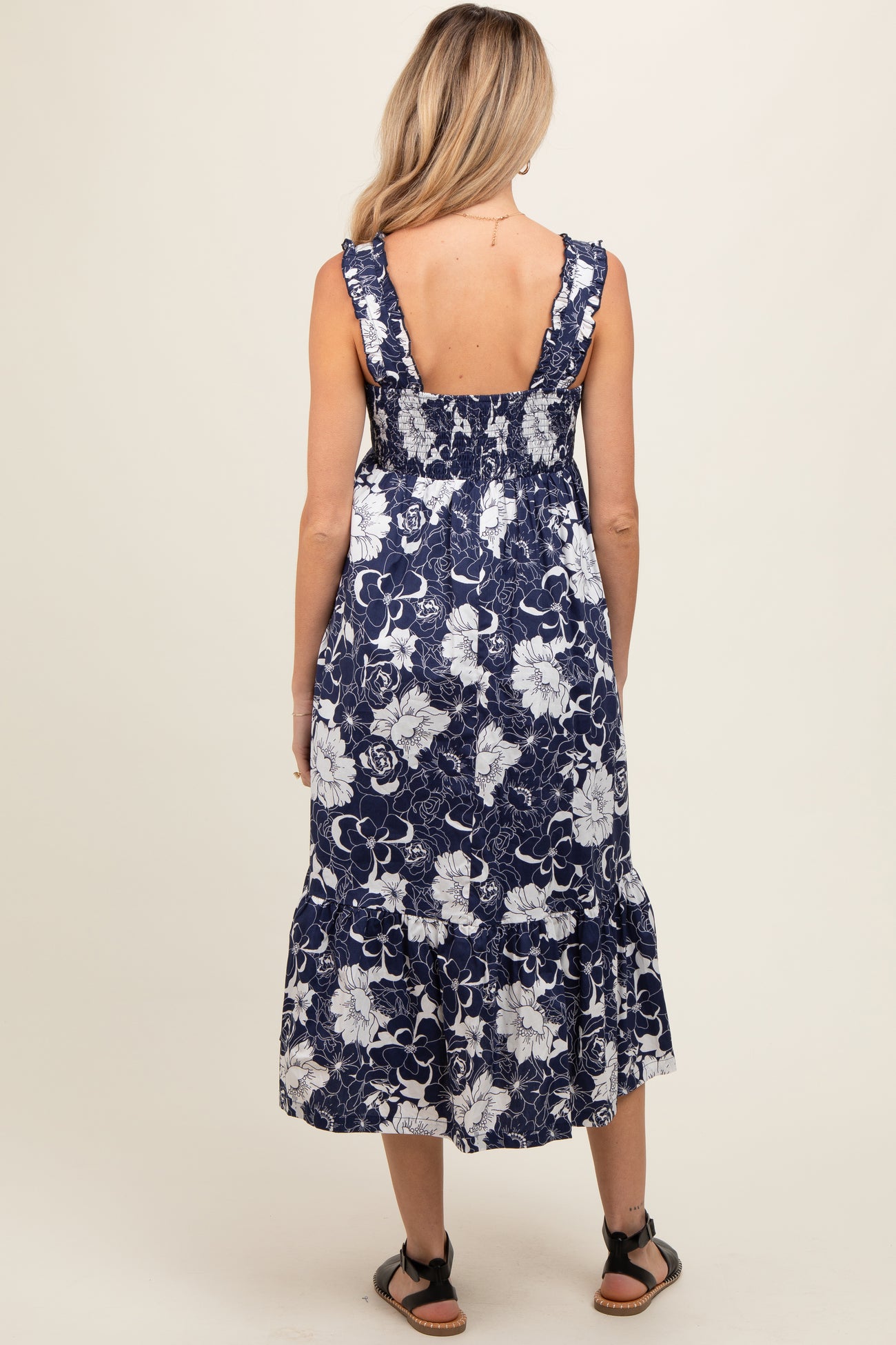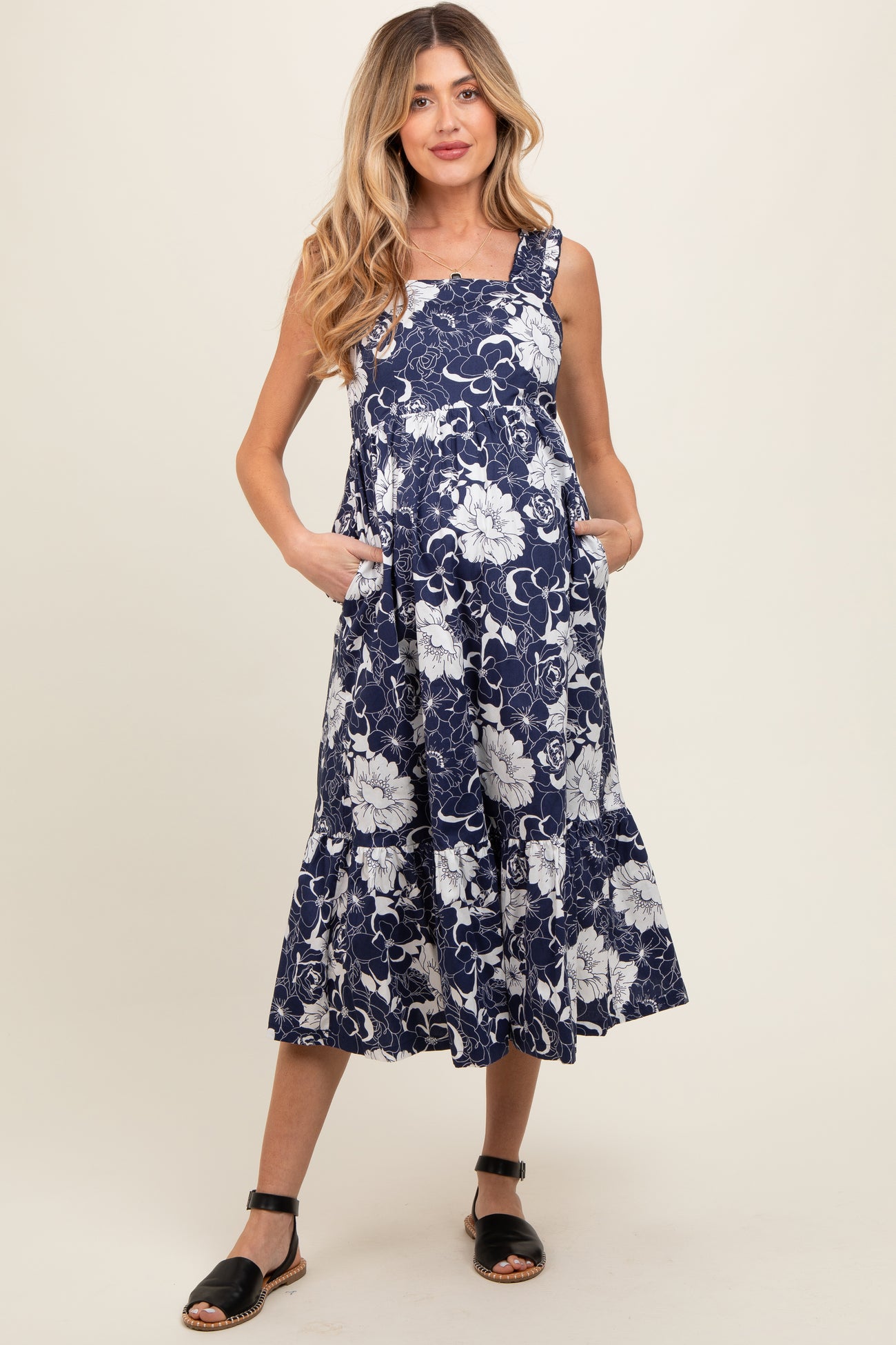 Navy Floral Tiered Sleeveless Maternity Midi Dress
