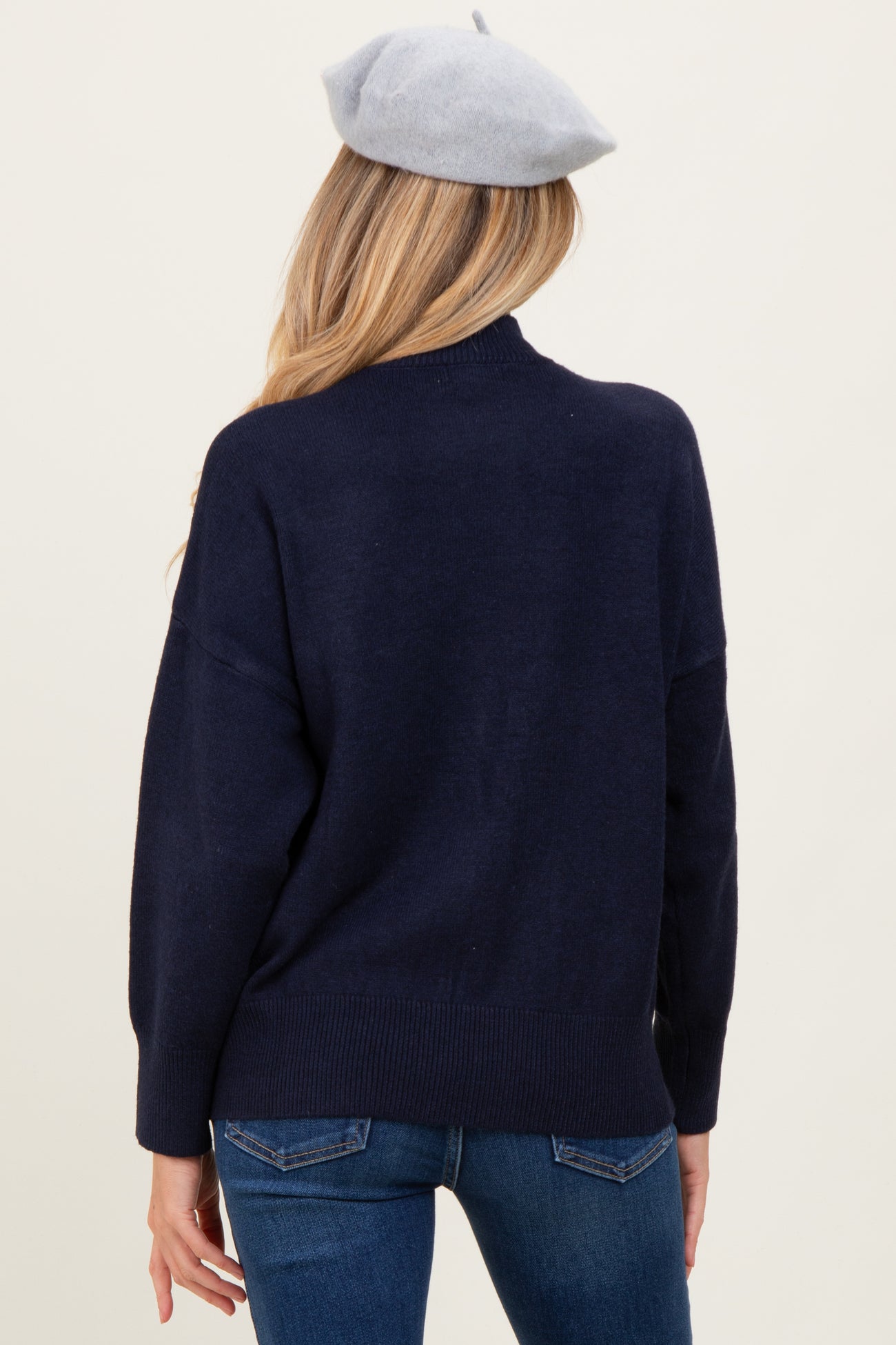 Stay cozy and stylish throughout your pregnancy with our Navy Front Seam Mock Neck Maternity Sweater. Crafted from a soft, stretchy knit, this sweater features a chic mock neck and a flattering front seam detail that adds subtle sophistication. Its relaxed fit gently accommodates your growing bump, providing comfort without sacrificing style. Perfect for layering or wearing on its own, this versatile navy sweater pairs effortlessly with your favorite maternity jeans or leggings. Embrace warmth and elegance all season long with this must-have maternity essential. Easy care and designed for ultimate comfort.