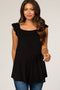 A solid hued short sleeve nursing top featuring a wrap front accent and a rounded neckline.