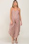 A pair of crop length, linen maternity pants featuring an elastic waistband, side pockets, and fringe trim.