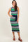 Navy Multi Striped Ribbed Knit Fitted Midi Dress