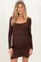 Elevate your maternity wardrobe with this ribbed long sleeve dress featuring a flattering ruched design that beautifully accommodates your growing bump. The tulip skirt adds a modern, feminine touch, while the square neckline provides an elegant frame. Crafted from soft, stretchy fabric, this dress ensures all-day comfort without compromising style. Perfect for both casual outings and special occasions, it’s a versatile piece that adapts seamlessly throughout pregnancy. Embrace your changing silhouette with confidence and effortless chic in this must-have maternity dress.