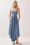 Navy Smocked Strapless Tulip Leg Jumpsuit