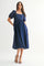Navy Swiss Dot Puff Sleeve Midi Dress