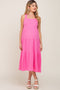 Neon Pink Tiered Crisscross Strap Midi Dress