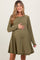 Olive Crew Neck Flared Fit Long Sleeve Maternity Mini Dress