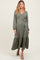 Olive Elegant Long Sleeve Waist Tie Maternity Midi Dress