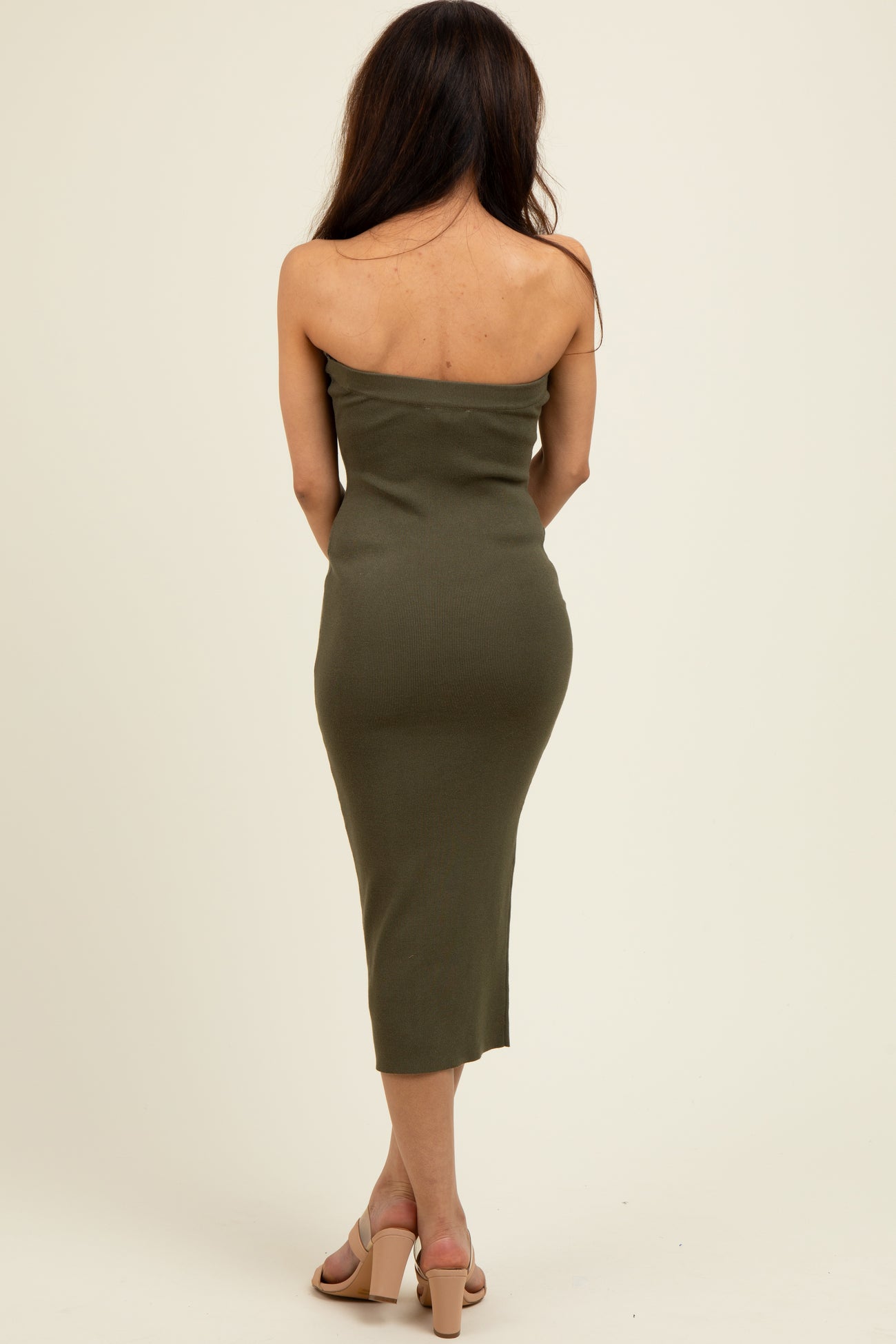 Olive Fitted Tube Knit Midi Dress