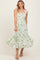 Olive Floral Shoulder Tie Tiered Midi Dress