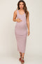 A sleeveless floral knit midi dress featuring side slits and a rounded neckline.