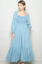 Embrace effortless style and comfort with this Plus Midi Dress, featuring a flattering smocked bodice that shapes and defines your silhouette. The 3/4 puff sleeves add a touch of romance, finished with delicate lace trim for subtle elegance. This midi-length dress flows gracefully, making it perfect for day-to-night wear. Designed with convenient side pockets and an adjustable tie neckline with charming tassels, it combines function with feminine details. Ideal for casual outings or special occasions, this breathable, soft fabric piece will have you feeling confident and chic wherever you go. Step into your new favorite dress today!