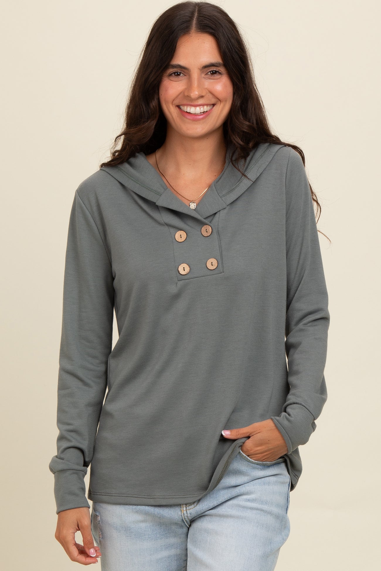 Olive Hooded Long Sleeve Maternity Top