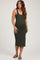 A solid knit maternity fitted sleeveless midi dress with a square neckline and a side slit.