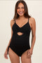 A ribbed maternity one-piece swimsuit featuring a v-neckline, a wrap detail, a front cutout, adjustable drawstring ties at the sides and removeable padding at the bust.