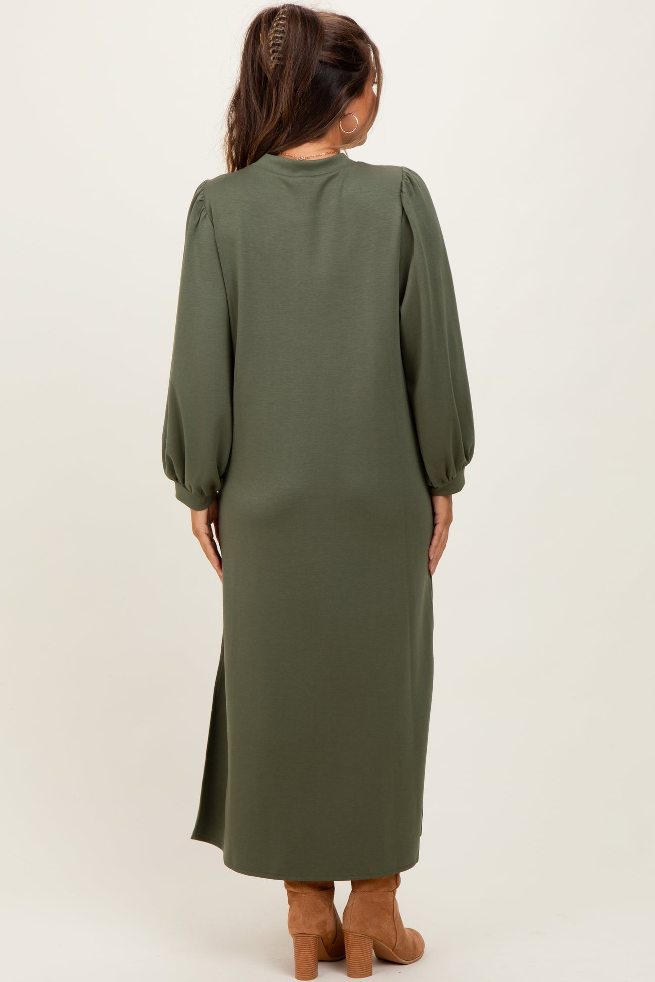 Olive Side Slit Detail Solid Maternity Midi Dress