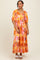 Orange Floral Tiered Puff Sleeve Midi Dress