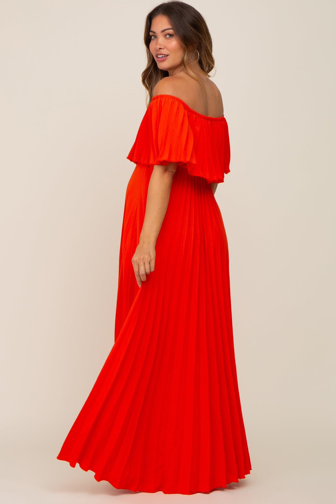 Orange Pleated Off Shoulder Maternity Maxi Dress