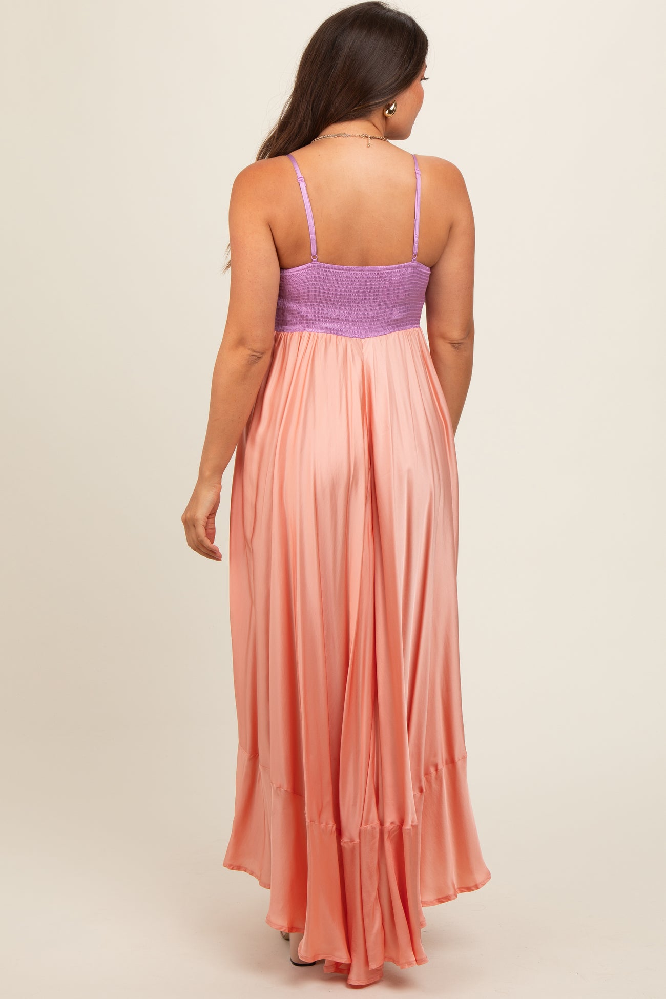 Peach Colorblock Sleeveless Satin Maternity Dress