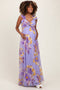 Peach Floral Chiffon Off Shoulder Maternity Maxi Dress