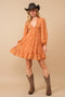 A floral print maxi dress featuring a v-neckline with a hook and eye closure, short dolman sleeves, a back elastic waist, and a tiered skirt. Skirt is partially lined.