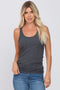 A basic ribbed maternity tank top featuring a racerback and a rounded neckline.