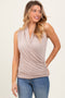 Peach Ruffle Mock Neck Sleeveless Blouse
