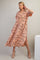 Peach Tiger Print Button Front Rounded Hem Midi Dress