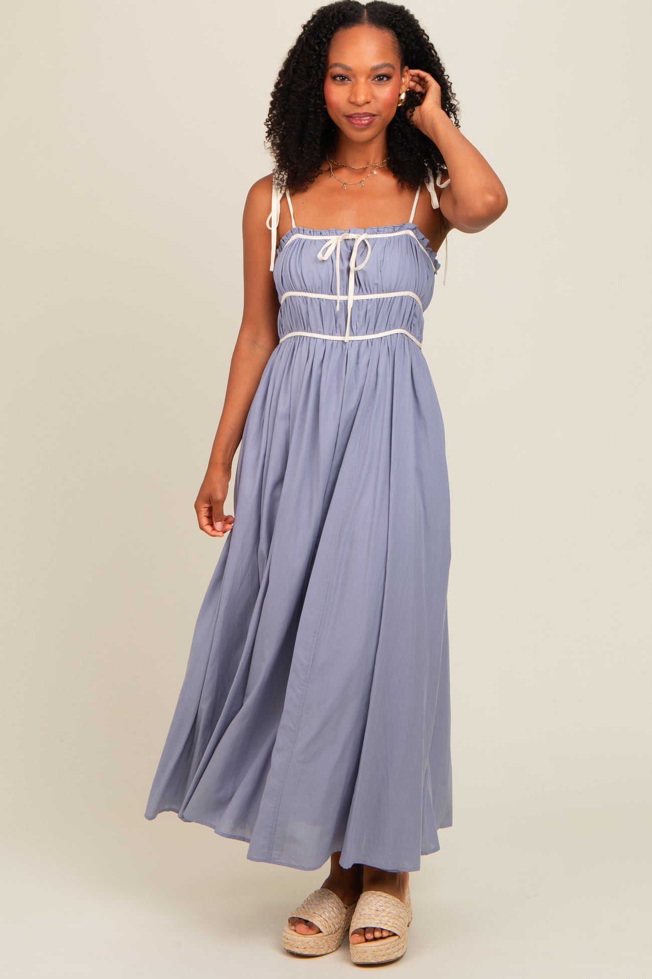 Periwinkle Contrast Ribbon Trim Maternity Maxi Dress