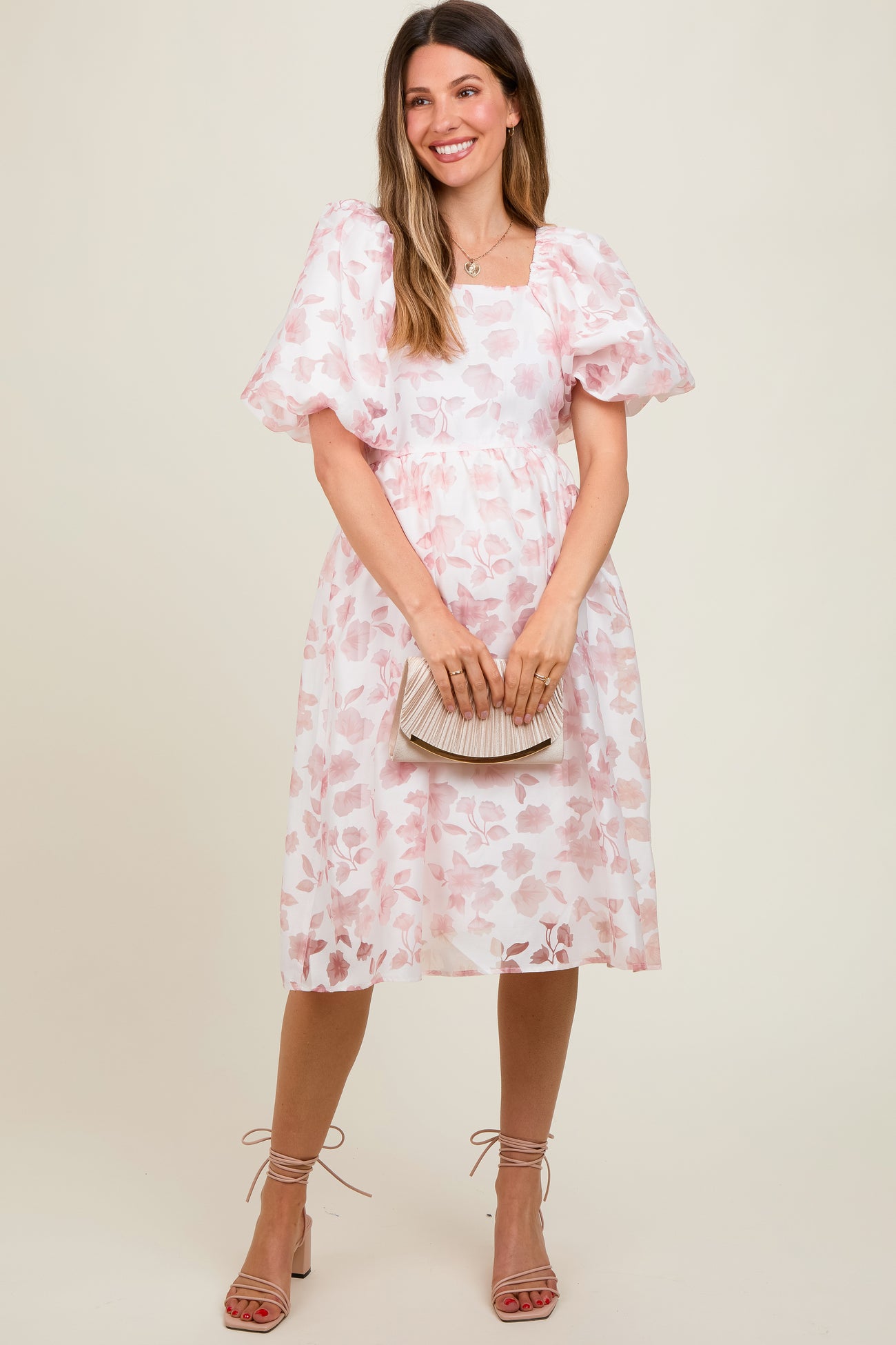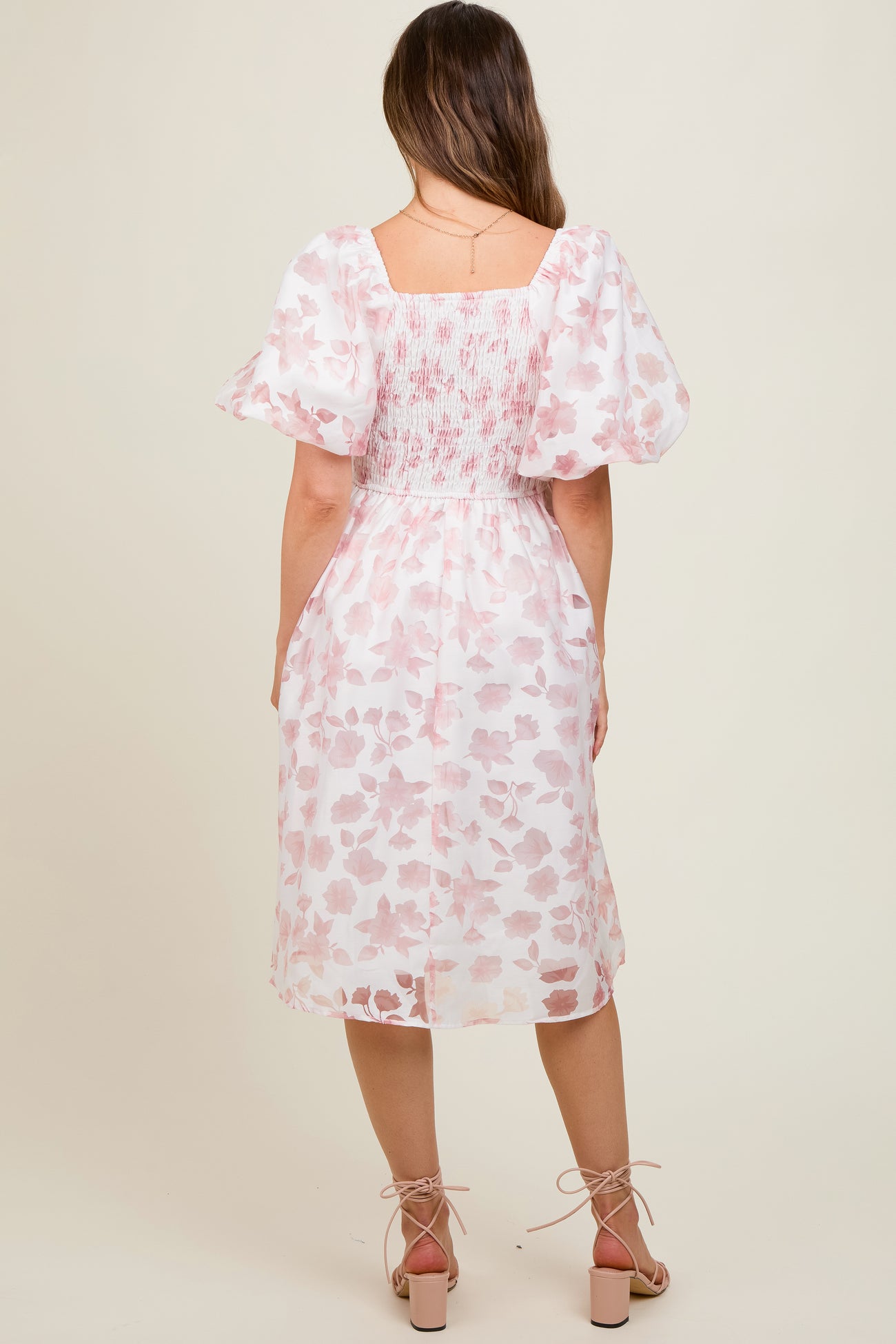 Pink Floral Puff Sleeve Maternity Dress