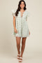 Pink Floral Split V-Neck Ruffle Sleeve Romper