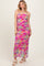 Pink Multi-Color Floral Mesh Ruched Sleeveless Maxi Dress