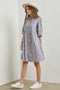 A printed dress with a squared neckline, short gathered puff sleeves, a smocked back, and a back tie.