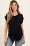 A sleeveless ribbed fitted maternity midi dress. Rounded neckline.