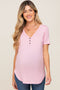 A solid hued top featuring short sleeves, a v-neck with button details and ribbed details.