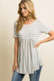 PinkBlush Grey Striped Crisscross Back Peplum Maternity Top