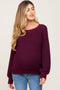A solid hue sweater featuring a popcorn knit, a rounded ribbed neckline, long raglan sleeves, and a ribbed bottom hem.