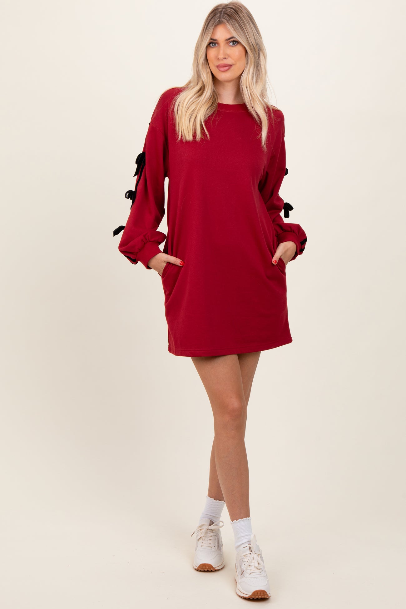 Red Bow Detail Long Sleeve Sweatshirt Mini Dress