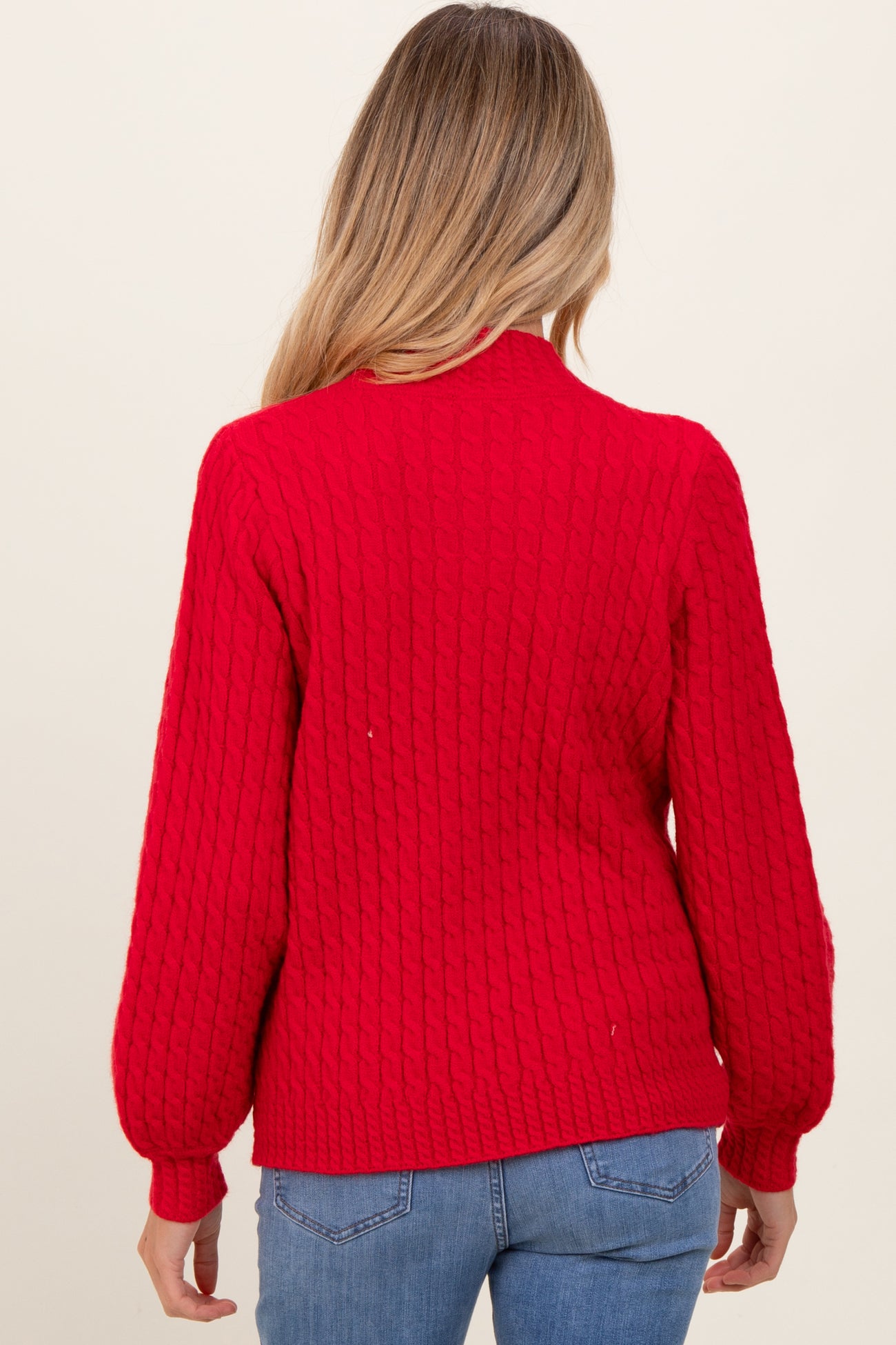 Red Cable Knit Mock Neck Bubble Sleeve Maternity Sweater