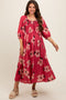 Red Floral Smocked Midi Dress