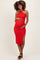 Red Halter Tied Criss-Cross Ribbed Maternity Midi Dress