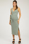 A satin leaf print maternity midi dress featuring a square neckline, adjustable cami straps, a back zipper, an empire waist and double lining.