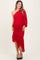 Red Mesh Ruched One Shoulder Asymmetric Maternity Dress