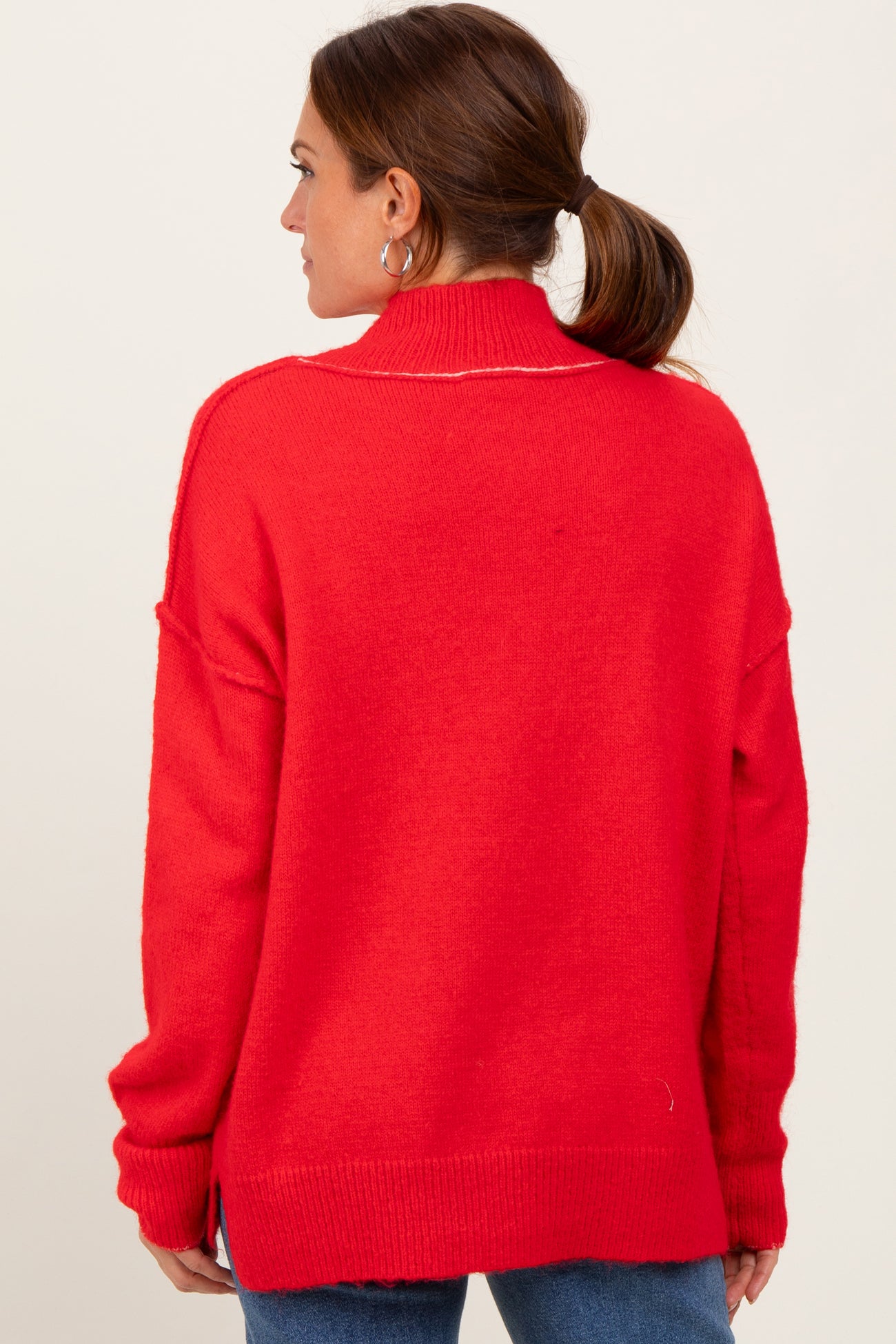 Elevate your cozy wardrobe with our Red Mock Neck Contrast Seam Sweater. Crafted from a soft, warm knit, this sweater features a chic mock neck and eye-catching contrast seam detailing that adds a modern twist to a classic silhouette. Its relaxed fit and dropped shoulders ensure comfort and effortless style, perfect for layering or wearing on its own. The vibrant red hue brings a bold pop of color to your everyday look. Pair it with your favorite jeans or skirts for a versatile outfit that transitions seamlessly from casual days to cooler evenings. Stay stylish and snug all season long!